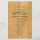 Beautiful MOUNTAIN WEDDING program paper sheet design featuring a sketched mountain motif and a big "welcome" in an elegant script as well as the wedding program details on a rustic wood-textured background for you to personalise.