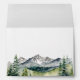 This beautiful rustic adventure begins wedding envelope features watercolor painted mountains, forest, pine trees, landscape, perfect for fall autumn, winter or destination wedding. For matching products please visit our collection Rustic Mountains Adventure Begins Wedding Suite.