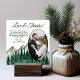 These beautiful wedding thank you cards are a wonderful way to show your appreciation to your friends and family for celebrating with you on your special day. They feature your wedding photo in an oval shaped frame with a watercolor landscape of pine trees and rugged mountain peaks. The title is written in deep forest green script lettering and reads "Love & Thanks" with room for a custom note and signature. Rustic, elegant, and sophisticated, these cards are the perfect way to conclude your wedding celebration.