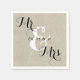 Personalised rustic yet contemporary design, with black and white text. Wedding paper napkins with Mr and Mrs and your wedding date in a typography design using a popular script font. A PRINTED beige linen photo effect background. Elke Clarke© for MonogramGallery at Zazzle. Perfect decor for rustic wedding receptions