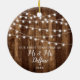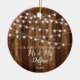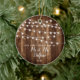 Rustic Mr and Mrs Personalised Wood String Lights Ceramic Ornament. Personalise with your custom information on both front and back.
