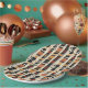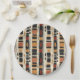 Earthy geometric pattern paper plate inspired by tribal mudcloth textiles, featuring hand-painted rectangles, diamonds, and triangles in charcoal black and terracotta on a textured beige background. A warm boho design ideal for rustic décor lovers, artisan style fans, and anyone drawn to earthy geometric aesthetics.