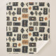 Earthy geometric pattern blanket inspired by tribal mudcloth textiles, featuring hand-painted rectangles, diamonds, and triangles in charcoal black and terracotta on a textured beige background. A warm boho design ideal for rustic décor lovers, artisan style fans, and anyone drawn to earthy geometric aesthetics.