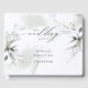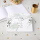 Wedding Guest Book | Modern rustic smokey grey green ethereal leaves and watercolor wash, this beautiful hand painted watercolor illustration offers shades of muted green with gold  fleck highlights.  Hand written script calligraphy is combined with a minimalist, contemporary style font.  A trendy  look for all seasons.  This is part of a wedding stationery collection Watercolor Dusty Green Foliage with matching wedding accessories. © WhimsicalArtwork created for the BarefootBride™