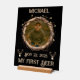 Celebrate a cherished milestone with this rustic "My First Deer" acrylic sign, perfect for commemorating a young hunter's first successful deer. The design features a weathered wood wreath framing a heartwarming photograph of the hunter, surrounded by natural elements like twigs and leaves. Below the photo, the date of the memorable hunt and the phrase "My First Deer" are elegantly displayed, accented by subtle deer head motifs. This sign captures the spirit of the outdoors and the pride of accomplishment, making it a unique keepsake for any young adventurer's room or a special display piece for family memories. The rich, dark background enhances the details of the design, creating a truly impactful visual.