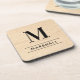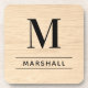 Rustic Natural Wood Serif Monogram Name Coaster