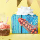 Rustic Nautical Blue Wood Burlap Starfish Wrapping Paper