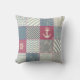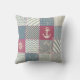 Rustic Nautical Patchwork Stripes Anchor Pattern Cushion