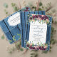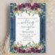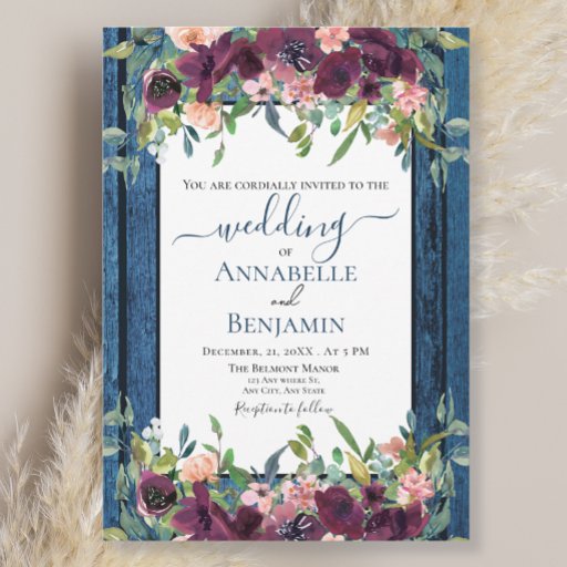 This beautiful and rustic design features burgundy flowers against a blue wood background. It's the perfect touch to a burgundy and navy themed wedding!
