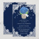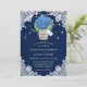 Rustic Navy Blue Burlap Lace Hydrangea Wedding Invitation