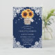 Rustic Navy Blue Burlap Lace Sunflower Wedding Invitation