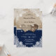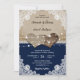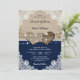 Rustic Navy Blue Burlap Lace Wedding Invitation
