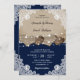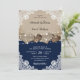 Rustic Navy Blue Burlap Lace Wedding Invitation