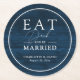 Rustic Navy Blue Eat Drink and Be Married Wedding Round Paper Coaster