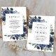 Rustic Navy Blue Floral All in One Wedding Invitation