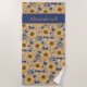 Rustic Navy Blue Golden Yellow Sunflower Name Beach Towel