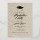 Rustic Navy Blue Graduate 2 Photo Graduation Gold Foil Invitation. Trendy gold foil graduation cap, text and details on the front. Rustic beige background. Add 2 photos on the front - you can add before and after photos. The invitation details are on the backside.