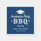 Casual and rustic style backyard BBQ / barbecue themed graduation party napkins feature western and modern fonts, grad cap accent, and a navy blue background colour that can be modified to other school colours.