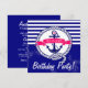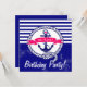 Navy Blue Anchor and Banner Stripes Nautical Birthday Invitation