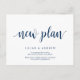 This is the modern minimal simple clean design themed, in Navy Blue font, Wedding party invitation Rescheduled (postponed / postponement) postcard (new plans) . It is the perfect and elegant way to make the reschedule announcement to your friends and family.