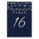 This rustic navy wood effect design with twinkling string lights will illuminate your wedding celebration tables. Change the table number and add to basket for as many tables as you require.