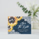 Rustic Navy Blue Sunflower Wedding Save The Date Announcement Postcard