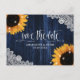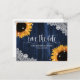 Rustic navy blue and sunflower wedding save the date postcard inspired by sunflower flowers.