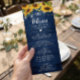 Rustic Navy Blue Sunflowers String Lights Wedding Menu