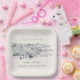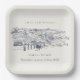 Rustic Navy Blue Winery Mountain Sketch Wedding Paper Plate