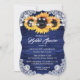 Rustic Navy Blue Wood Lace Sunflower Bridal Shower Invitation