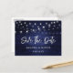 Rustic Navy Blue Wood Lights Wedding Save The Date Announcement Postcard