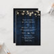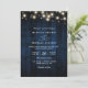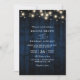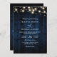 Rustic Navy Blue Wood String Light QR Code Wedding Invitation