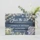 Rustic Navy Blue Wood String Lights & Lace Save The Date