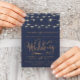 Introducing our charming rustic blue and string lights wedding invitation, elegantly adorned with gold script. This enchanting design combines rustic elements with a touch of romance, which sets the tone for your enchanting wedding celebration.