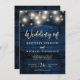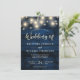 Rustic Navy Blue Wood String Lights Wedding Invitation