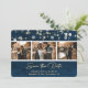 Personalised navy blue rustic wedding photo save the date cards. Easily personalise this navy blue photo save the date with your images and wedding details including a wedding website.