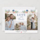 Watercolor blush pink floral wedding thank you card features with watercolor blush pink floral, blue eucalyptus leaves, and beautiful square photos. Personalise the text template with your wedding details.