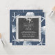 Rustic Seashells Navy Blue Wood Framed Starfish Wedding Invitations.