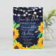 Rustic navy blue watercolor cement, string lights sunflowers wedding save the date with hand painted orange and green floral sunflowers arrangement on a vintage cement and an elegant calligraphy typography. Perfect for fall autumn weddings. Perfect for country , barn wedding themes.