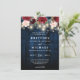 Rustic Navy Wood Floral String Lights Wedding Invitation