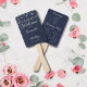 The fans are very pretty and easy to assemble. We utilized the original template and just inserted the names of our wedding party. After the product arrived we noted they read,”Made of Honor” rather than “Maid of Honor”. Upon re-checking the website we noticed the typo is in the original template and was not a mistake on our end. It is too late to return because our wedding is in just a few days but if we had time we would certainly request an exchange. See review above regarding typo.