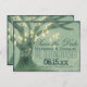 String of Hanging Mason Jar Lights Rustic Oak Tree Save the Date Postcards in an green colour with your return address on the back and a blank area for you to address the postcards to your guests. These are great for country weddings. The background is a distressed design and the oak tree illustration has a heart and arrow design in the tree trunk.