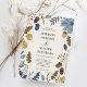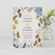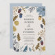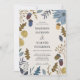 Rustic fall leaves, autumn floral flowers and acorns in taupe mustard and dusty blue colour shades tones. For the perfect autumn wedding invitation. Original artwork by Caroline Bonne Müller