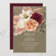Rustic Olive Green & Burgundy Floral Wedding Invitation