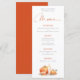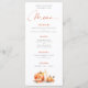 Rustic Orange Pumpkins Candle Wedding. Available digitally and printed. A coordinating colour is on the back, with an elegant set script for Menu and easy to personalise the rest of the text to your requirements. Change text styles, colours and background colours if you wish via the edit further option.