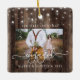 Rustic Our First Christmas Engaged 2 Photo Ceramic Ornament