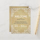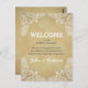 This rustic style wedding weekend welcome card features a white, hand drawn paisley pattern on all four corners and a rustic gold background. Custom text allows you to add a personal welcome message and the names of the bride and groom.