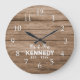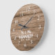 Wedding clock with a rustic pallet wood background. Personalise the farmhouse style clock with last name of the new couple for an unique wedding anniversary gift.