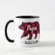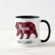 This rustic themed coffee mug features a red and black buffalo plaid bear on a white background. The bear reads "Papa" on it in white typography with a name below for you to personalize in black. Designed by world renowned artist Tim Coffey.