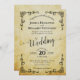 This beautiful wedding invitation is simple, rustic and beautiful. It features a vintage old world design with elegant script calligraphy, ornate decorative scroll work in the corners, and a faux parchment background. The wording is formal and the classic design evokes an antique feel.